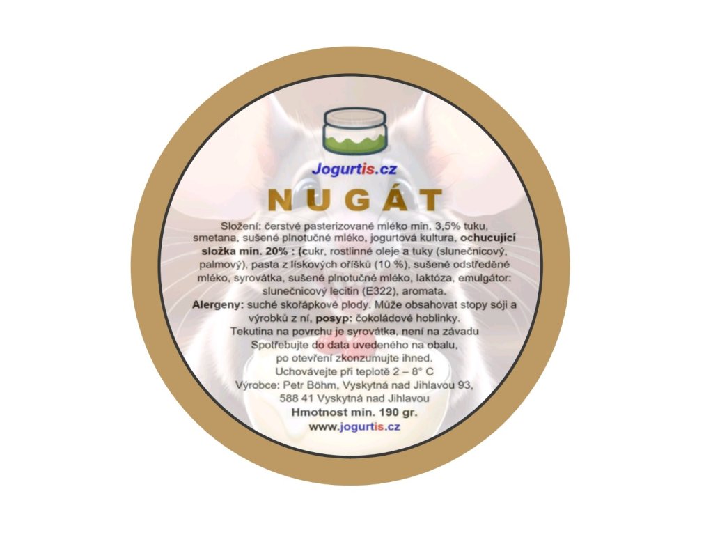 Složení: čerstvé pasterizované mléko min. 3,5% tuku, smetana, sušené plnotučné mléko, jogurtová kultura, ochucující složka min. 20% : (cukr, rostlinné oleje a tuky (slunečnicový, palmový), pasta z lískových oříšků (10 %), sušené odstředěné mléko, syrovátka, sušené plnotučné mléko, laktóza, emulgátor: slunečnicový lecitin (E322), aromata.